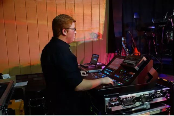 舞臺(tái)右側(cè)的Monitor工程師 Colten Hyten,使用的是 Roland M-5000C 現(xiàn)場混音臺(tái)。“我用Roland M5000和M5000C調(diào)音臺(tái)有一年半的時(shí)間了。曾經(jīng)用M5000/M5000C做過各種不同類型的演出,包括搖滾樂隊(duì)甚至是軍樂隊(duì),這個(gè)臺(tái)子的靈活性讓你可以完成所有你能想到的復(fù)雜操作。我們同時(shí)使用了 6 個(gè) M-48個(gè)人混音器來應(yīng)對這種有大量樂手的大樂隊(duì),這樣的話,每一個(gè)樂手都能自行獨(dú)立控制調(diào)節(jié)自己在耳返里聽到的混音。這些樂隊(duì)里的樂手很多人自己本身也經(jīng)常錄音,他們對監(jiān)聽的電平有自己的想法,通過 M-48 個(gè)人混音器可以讓他們在現(xiàn)場演出時(shí)聽到和他們平時(shí)錄音時(shí)一樣的監(jiān)聽,這對于現(xiàn)場發(fā)揮是極好的。” Hyten 如此評價(jià) M5000/M5000C調(diào)音臺(tái)。