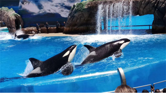 a 圣地亞哥海洋公園海獅表演驚起的水花和歡呼